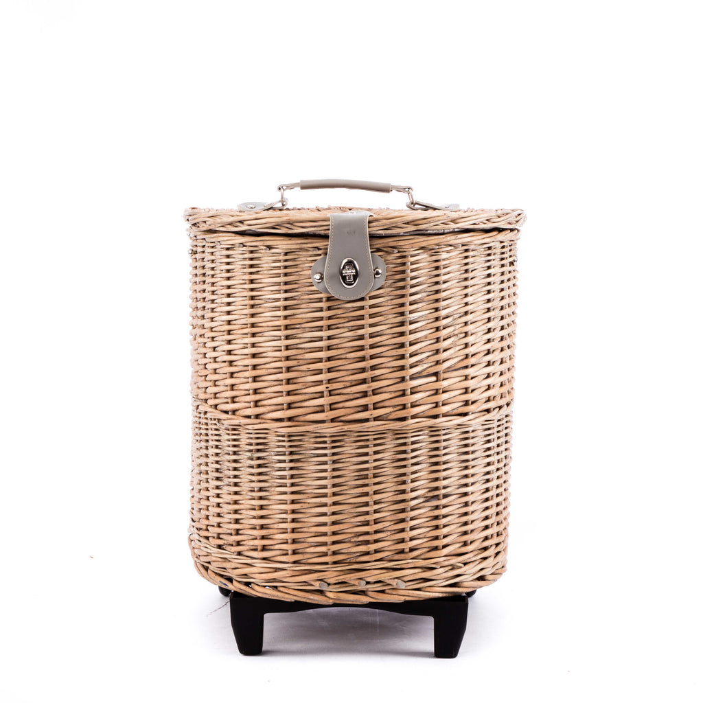 The Worthing Wheely Cooler Basket from Todhunter - picnic in style with this unique basket. The perfect solution to carrying everything. Beneath the Todhunter exclusive design fabric lies a huge cooler compartment. Simply fill with your favourite goodies and wheel away to that special event. Part of The Oak Leaf Collection.